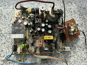 Der eklige braune Kleber war auch an anderen Stellen. Ich habe ihn (wo möglich) entfernt. An den Hochspannungsteilen wollte ich aber nicht herumfummeln.