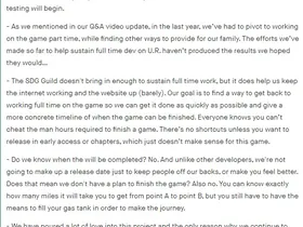 - As we mentioned in our Q&A video update, in the last year, we’ve had to pivot to working on the game part time, while finding other ways to provide for our family. The efforts we’ve made so far to help sustain full time dev on U.R. haven’t produced the results we hoped they would…