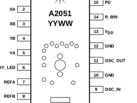 Wichtig ist der optische Sensor. Wenn ein Agilent ADNS-2051 verbaut ist (auf dem Sensor selbst steht 'A2051'), dann hat man Glück, denn dieser Sensor hat nicht nur ein serielles Interface sondern liefert auch die 4 Quadaratursignale (an den Pins 2 -5 ) wie man sie von den optischen Aptastern in den Amiga-Mäusen kennt. Die Idee war wohl, daß man so einfach ein bestehendes Design auf optisch umbauen kann.