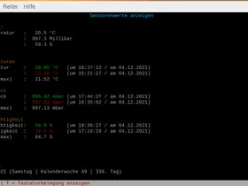 Ich habe es zwar nicht heute geschrieben sondern über Wochen (immer wenn ich Zeit und Lust hatte). Am Ende ist es ein kleines Python Programm zur Anzeige von Temperatur, Luftdruck und Luftfeuchtigkeit des SenseHat geworden. Als nächstes sollen alle Werte per Cronjob in eine sqlite3 Datenbank gespeichert werden. Später soll eine Auswertung der Daten folgen und im Anschluss soll es nach tkinter portiertt werden.