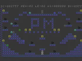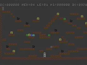 - Der Level wird immer gleichmäßig eingefärbt: "Level-Basisfarbe" für alle konstruktiven Elemente (Böden, linke Wand), Schlangen schwarz, Geld gelb, Leiter zweifarbig (oben hell-blau, unten grau - das war im Editor interessanterweise schon so