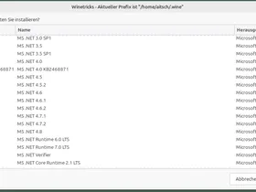 Unter winetricks / wine sind nur diese Pakete zu installieren: